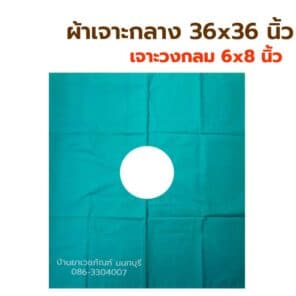 ผ้าเจาะกลางขนาด 28×28 นิ้ว เจาะกลางวงกลม 6×6 นิ้ว ราคา 155 บาท