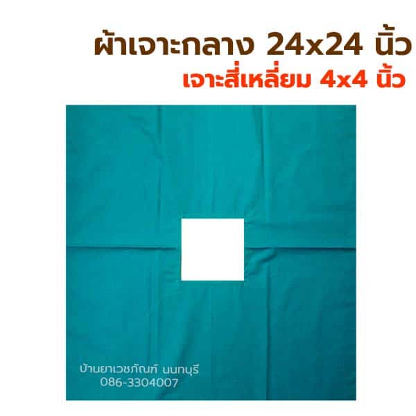 ผ้าเจาะกลางขนาด 24×24 นิ้ว เจาะกลางสี่เหลี่ยม 4×4 นิ้ว ราคา 135 บาท