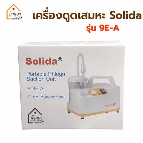 เครื่องดูดเสมหะ Solida รุ่น 9E-A ใช้สำหรับดูดเสมหะ เลือด ในระบบทางเดินหายใจ เหมาะกับการใช้งานในห้องฉุกเฉิน ห้องผ่าตัด ห้องดูแลผู้ป่วยและที่บ้าน
