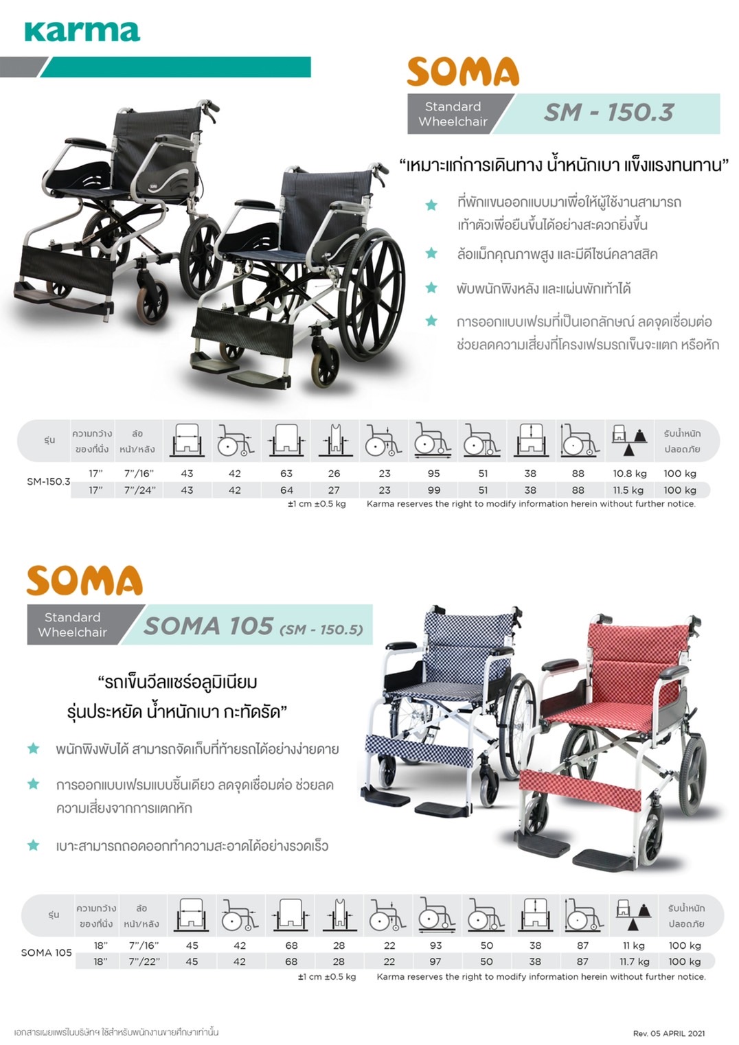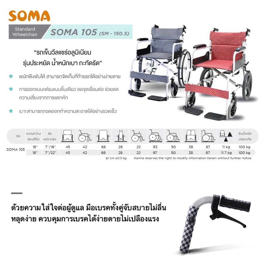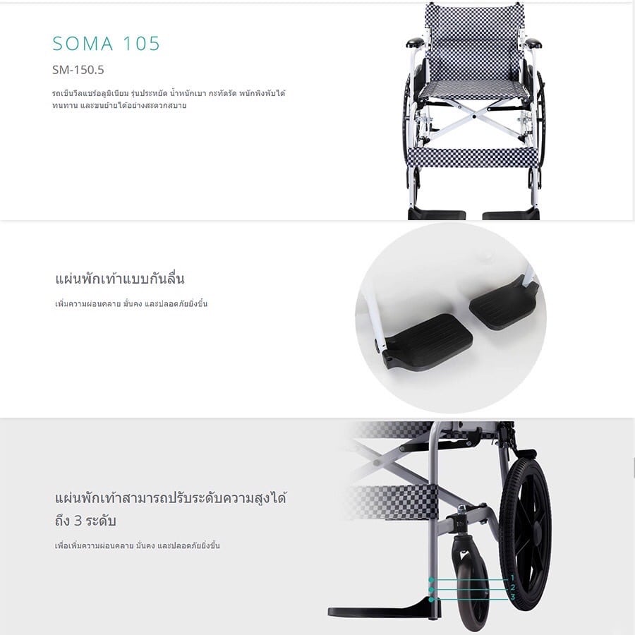 รถเข็นวีลแชร์ Wheelchair Soma รุ่น 105 (SM-150.5)
