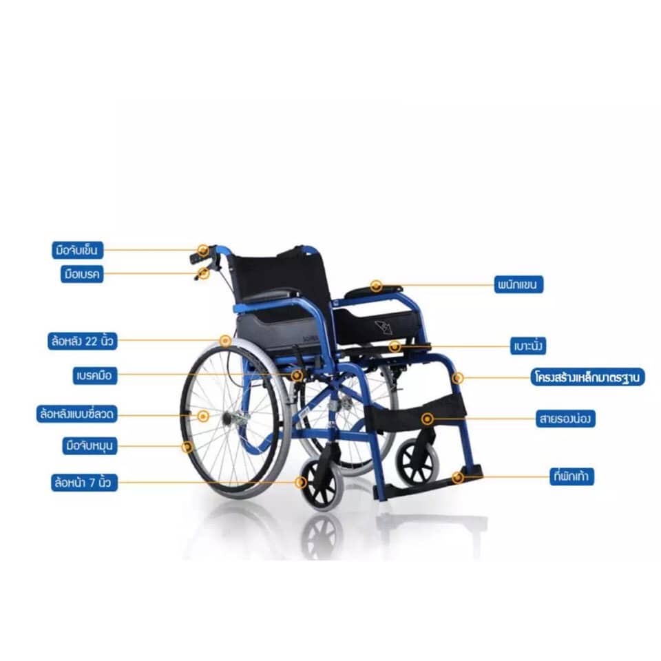 - รถเข็นวีลแชร์ โครงสร้างทำจากเหล็ก พับเก็บได้ (แต่พนักพิงพับไม่ได้)