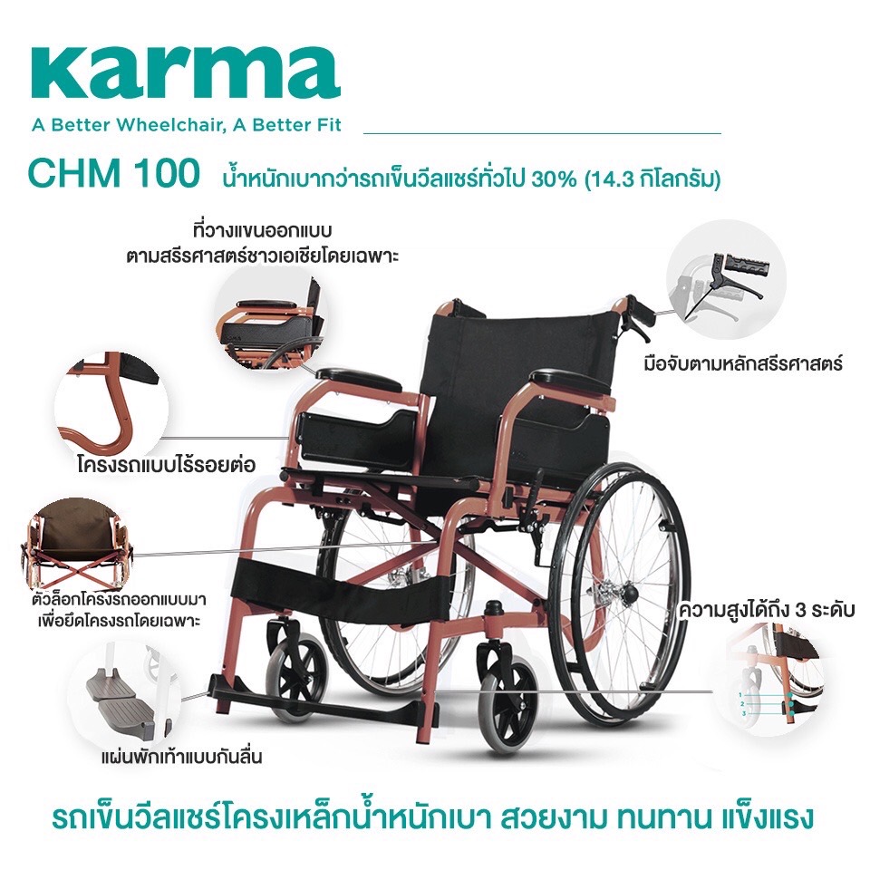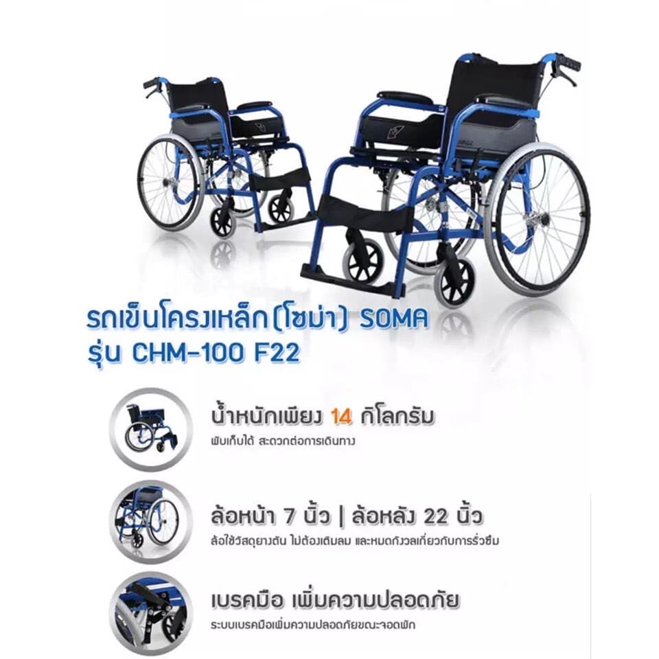 รถเข็นวีลแชร์ เหล็กชุบโครเมียม Wheelchair Soma รุ่น CHM-100